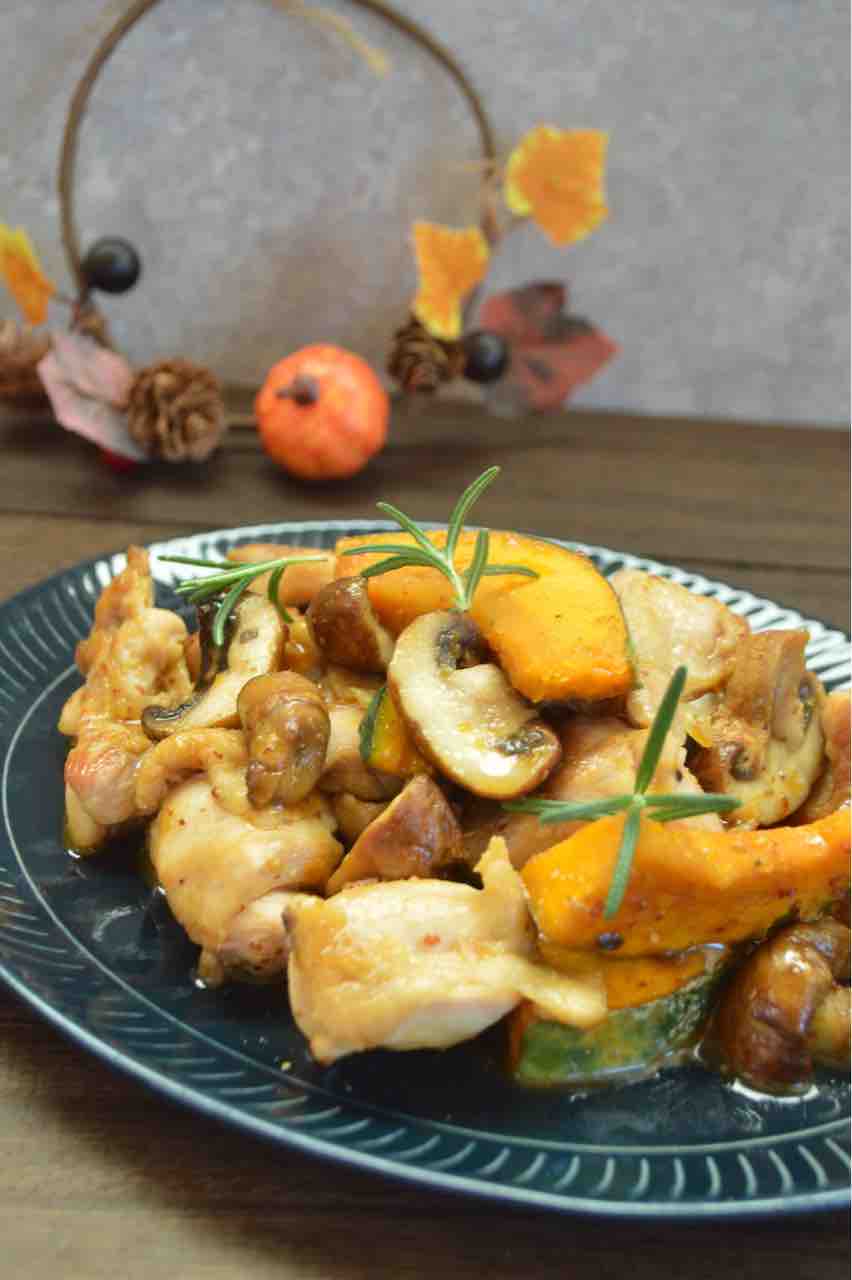 6,5に1・3、Aを入れて、鶏肉に火が通り、汁けがなくなるまで焼く。