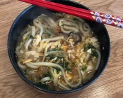 2020年12月31日 ネギたっぷりサンラータン風うどん カテゴリ:ぐんまクッキングアンバサダー レシピ群馬県産ネギ…1本豆苗…1/2パックしいたけ…2枚a水…3カップa鶏がらスープの素…大さじ1〜a塩…小さじ1a酢…大さじ2〜たまご‥1個水溶き片栗粉うどん‥2玉作り方ネギはななめ明日からにする。豆苗は2cm幅に切る。椎茸は薄くきる。aを鍋に沸かす。1を2にいれて柔らかく… >>続きを読む